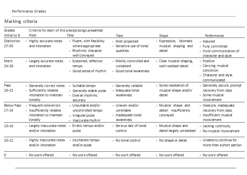ABRSM Exam Marking Criteria