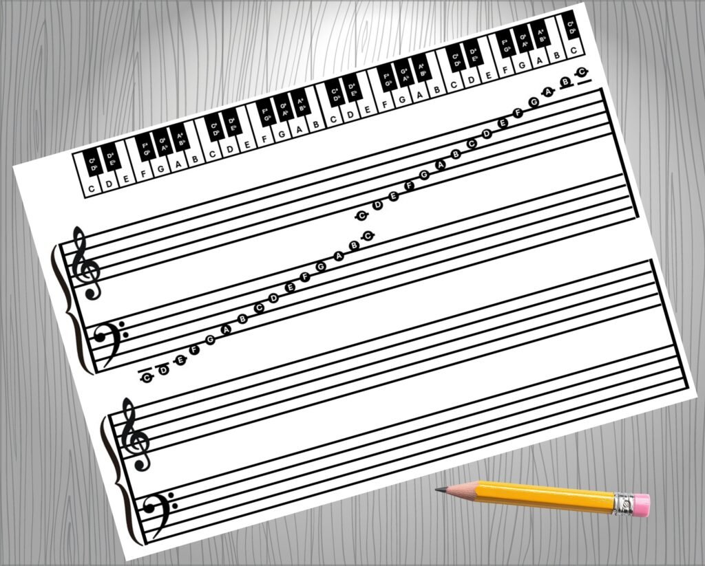 Print, cut and place the template on the piano - the arrows point to the notes in the major scale